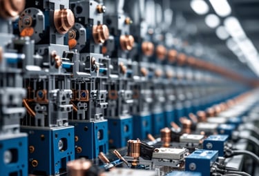 "In the electrical industry, our innovations include arc chamber solutions, de-flashing machines, contact tip brazing, and robotic assembly systems, ensuring efficiency and precision."